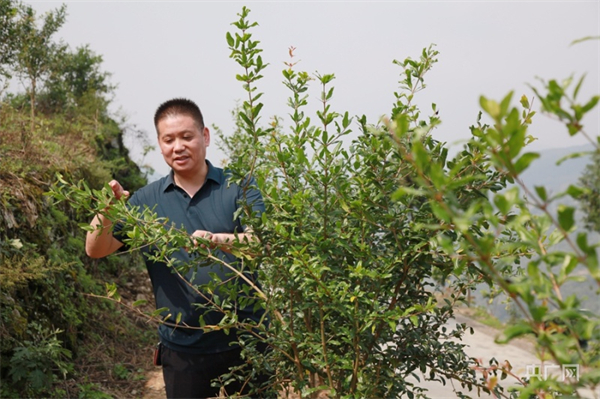 近日,記者在位于陜鄂交界的安康市白河縣城關(guān)鎮(zhèn)勝利村走訪時,在漢水邊城林果產(chǎn)業(yè)園里,該村黨支部書記黃鑄武一邊介紹村里新栽種的石榴,一邊指著不遠處的枇杷園、櫻桃園,講述著村里因林果業(yè)致富的故事。VFm安康新聞網(wǎng)