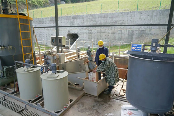↑4月9日,工作人員在白河縣里端溝(二期)重金屬污染綜合整治工程項(xiàng)目污水處理站內(nèi)清淤。Sv2安康新聞網(wǎng)