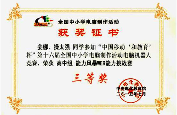 “中國移動‘和教育’杯”第十六屆全國中小學(xué)電腦制作活動結(jié)果日前揭曉,白河高級中學(xué)學(xué)生姜娜和操太強(qiáng)在高中組能力風(fēng)暴WER能力挑戰(zhàn)賽——&……