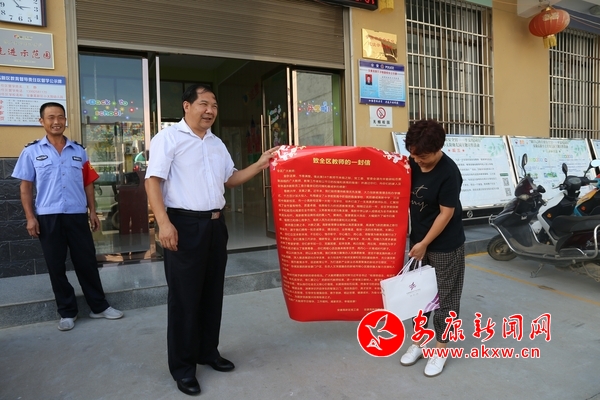 安康新聞網(wǎng)訊(通訊員 覃濤)第34個(gè)教師節(jié)來(lái)臨之際,為營(yíng)造莊重喜慶、尊師重教的節(jié)日氛圍,激發(fā)教師員工的職業(yè)榮譽(yù)感和神圣使命感,按照安康高新區(qū)管委會(huì)辦公室統(tǒng)一安排,9月7日,安康高新分局領(lǐng)導(dǎo)帶領(lǐng)信訪維穩(wěn)部、教體局、公安局等部門(mén)同志深入轄區(qū)中小學(xué)校、幼兒園,向堅(jiān)守在教育一線默默耕耘的教職員工送去節(jié)日慰問(wèn)和祝福。PuR安康新聞網(wǎng)