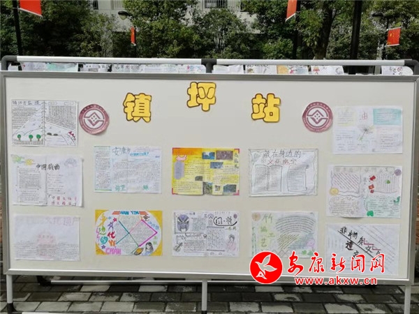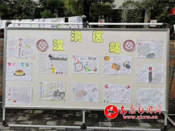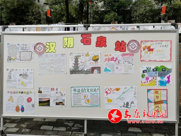 此次展板按地域文化特色,分為漢濱區(qū)站、旬陽平利站、漢陰石泉站、鎮(zhèn)坪站、紫嵐寧站五大板塊。每一張手抄報,從設計到排版,從書寫到繪畫,都各具特色:這里面有對壯美河山的贊美,有對雄偉建筑的欽佩,有對安康區(qū)縣奇觀異景、民俗文化的自豪……圖文并茂的手抄報吸引了全校師生駐足觀賞,嘖嘖稱贊,更有學生拿著紙筆認真地做記錄。