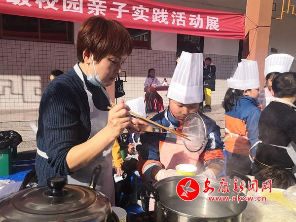展示當(dāng)日,師生和家長代表齊上陣,按照預(yù)先劃好的區(qū)域,掛宣傳條幅,布置海報,擺好廚具,整理食材,在操場四周設(shè)立了一個個風(fēng)味美食排擋。同學(xué)們變身小廚師、小老板,在家長的配合下,和面、榨汁、調(diào)味,用心制作美食,學(xué)習(xí)生活常識,接受了一次生動的勞動技能教育。經(jīng)過燒、烤、煮、炸、蒸,他們巧手烹飪的各色美食新鮮出爐,擺滿了檔口展臺,期待師生們前來品鑒。rWT安康新聞網(wǎng)