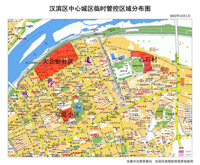 根據(jù)當(dāng)前疫情形勢,經(jīng)專家組研判和漢濱區(qū)疫情防控指揮部研究,決定自2022年12月1日零時起,對中心城區(qū)江南、江北重點(diǎn)區(qū)域臨時管控區(qū)予以調(diào)整。