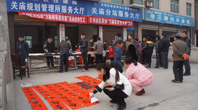 為認(rèn)真貫徹文化部“文化進(jìn)萬(wàn)家”活動(dòng)要求,日前,漢濱區(qū)2015年“萬(wàn)副春聯(lián)進(jìn)農(nóng)家活動(dòng)”在關(guān)廟鎮(zhèn)金星村舉行。啟動(dòng)儀式由區(qū)文廣局、關(guān)廟鎮(zhèn)、區(qū)文化館、區(qū)……