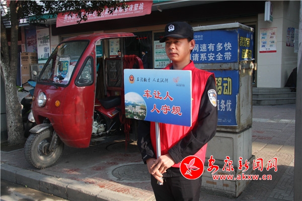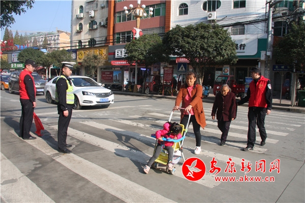 10月30日,該縣公安局20余名志愿者們身穿紅馬甲,手持小紅旗來到無交通信號燈北城街與解放街十字路口,通過揮動小紅旗、文明勸阻等方式,引導過往行人過馬路走斑馬線,提醒過往車輛減速慢行、禮讓行人,幫助老年人、到小孩的婦女、兒童、殘疾人等有困難的群眾安全過馬路,倡導“機動車禮讓斑馬線,機動車按序排隊通行,機動車有序停放,文明使用車燈,行人、非機動車各行其道,行人、非機動車過街遵守信號”六大文明交通行為。EVD安康新聞網(wǎng)