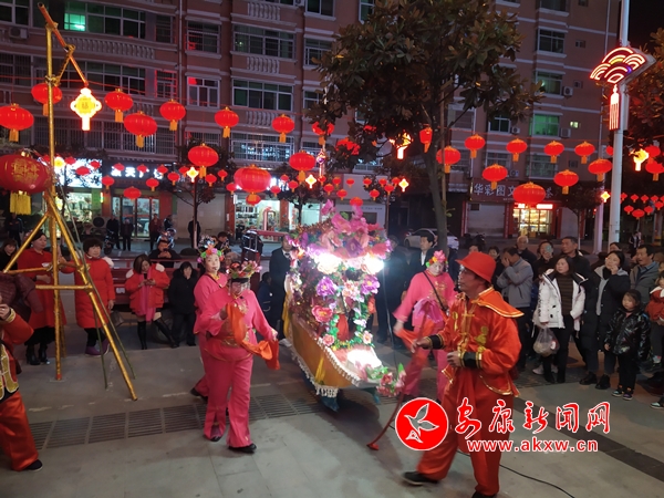 平梁鎮(zhèn)沐浴河村的采蓮船來(lái)到了縣城進(jìn)行賀新春歡度元宵節(jié)慰問(wèn)演出活動(dòng)。彩船花枝招展,鮮亮耀眼。彩船旁邊的4位婀娜多姿的伴舞者,邁著輕盈的秧歌舞步,舞動(dòng)腰間的彩綢帶,為群眾送上優(yōu)美、中聽(tīng)、吉祥的話語(yǔ),送去新春的恭賀祝福和濃郁的鄉(xiāng)情與熱情,深受干部居民群眾的歡迎。