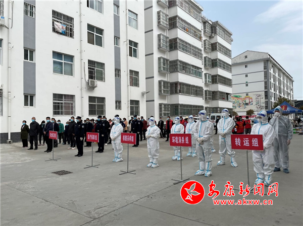 本次演練預設集鎮(zhèn)社區(qū)某單元存在一名境外返漢人員于居家隔離期間發(fā)熱,經(jīng)轉(zhuǎn)院隔離治療確診為新冠肺炎病例。社區(qū)迅速啟動應急預案,對本單元住戶進行流調(diào)排查、進行全員核酸檢測篩查、疫點終末消殺、密接隔離、小區(qū)二期封控、雙乳村管控等措施。