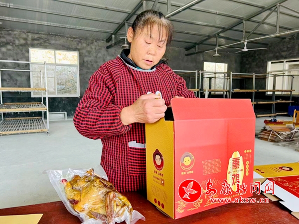 隨著熏雞產(chǎn)業(yè)的蒸蒸日上,合作社用工人數(shù)也在不斷增加,越來越多周邊村民前來務(wù)工。今年57歲的龍佰香便是其中的一員,夏天養(yǎng)蠶,冬天制作熏雞,像她這樣的務(wù)工人員還有20多個人。