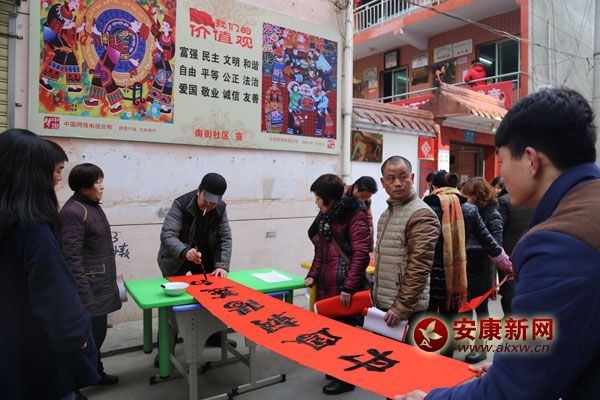 安康新網(wǎng)訊 (通訊員 李鳳琴 敖利明) “厚德載物新風(fēng)尚,和善余慶春滿堂。”退休干部吳大爺拿到書法家現(xiàn)場書寫的春聯(lián)后高興不已,“‘德善’是做……