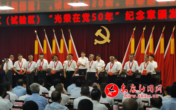 在慶“七一”表彰大會(huì)上,全體參會(huì)黨員面對(duì)鮮紅的黨旗,高舉右手,重溫入黨誓詞,鏗鏘嘹亮的宣誓聲響徹會(huì)場(chǎng),激蕩人心,昭示著全區(qū)黨員矢志不渝為黨和人民事業(yè)不懈奮斗的堅(jiān)定信念。會(huì)上,為高劍村黨支部等10個(gè)先進(jìn)基層黨組織、王開昌等10名優(yōu)秀黨務(wù)工作者、王天蒼等20名優(yōu)秀共產(chǎn)黨員代表分別頒發(fā)了榮譽(yù)證書,為“光榮在黨五十年”的10名老黨員代表頒發(fā)了紀(jì)念章。gS9安康新聞網(wǎng)
