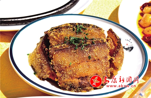 粉蒸肉:是嵐皋待客名菜。成菜時以老藕、南瓜、紅薯等墊底,以主料帶皮五花肉和調(diào)味料制作而成。粉蒸肉有肥有瘦,紅白相間,嫩而不糜,米粉油潤,軟、嫩、甜、香、咸,糯而清香,滋味豐富,誘惑滿滿。