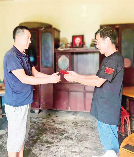 7月11日,嵐皋縣藺河鎮(zhèn)蔣家關村黨支部副書記李輝友接過嵐皋縣電信分公司職工徐加國遞過來的紅色信封,信封上“徐開遠最后一次黨費”特別引人矚目。原來,這是已故的92歲抗美援朝老兵徐開遠向黨組織交納的100元黨費,專程來送交這筆特殊黨費的是他的兒子徐加國。mQV安康新聞網(wǎng)