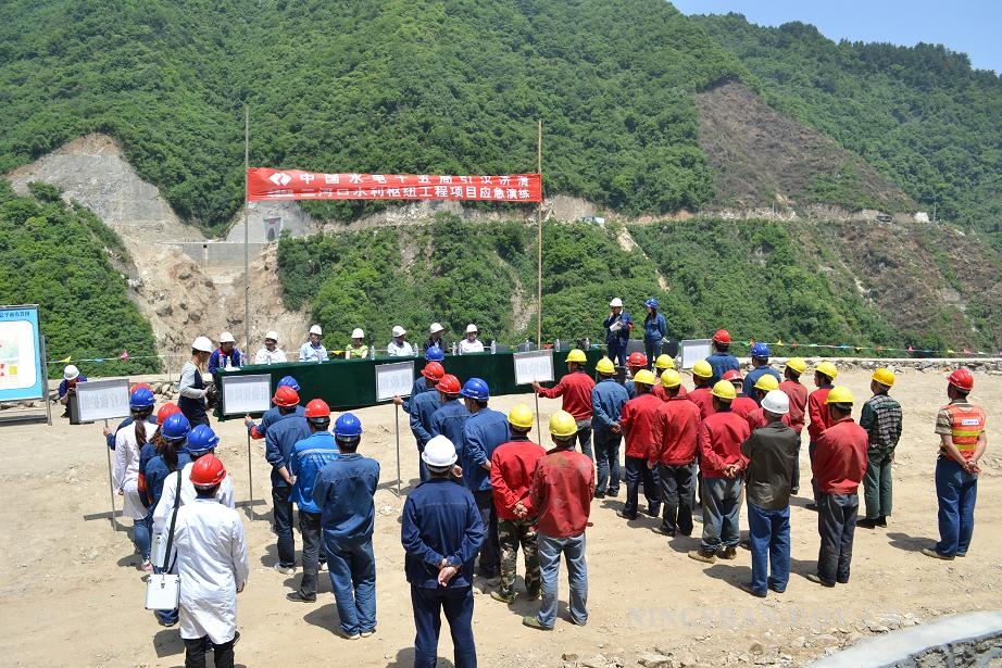 寧陜縣三河口水利樞紐施工現(xiàn)場舉行防洪防汛演練