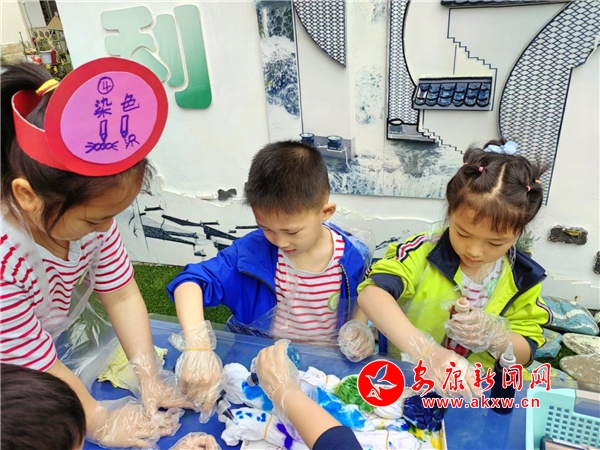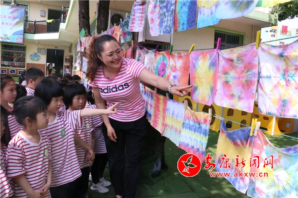 為了讓孩子們傳承傳統(tǒng)制作工藝,在親身體驗中感受扎染的圖案美、色彩美和形式美,培養(yǎng)其動手能力和創(chuàng)意表現(xiàn)力,5月26日,平利縣幼兒園開展了慶“六一”系列活動中的重要一項——“繽紛扎染 布里生畫”手工扎染活動。