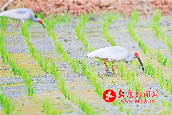 開幕式現(xiàn)場,石泉縣城關第二小學的師生代表共同宣讀了朱鹮保護倡議書,與會嘉賓還向石泉縣新成立的朱鹮保護志愿者服務隊進行了授旗。當?shù)劓?zhèn)村干部組成志愿服務插秧隊,與群眾同耕“連心田”,助農(nóng)“三夏”生產(chǎn),共同守護糧食安全。鎮(zhèn)村干部挽起袖子褲腿,下到稻田里,帶領大家一起體驗插秧的樂趣,傳遞以傳統(tǒng)耕作方式踐行有機農(nóng)業(yè)理念,表達擼起袖子加油干,全面推進鄉(xiāng)村振興的信心和決心。