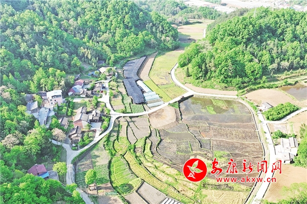 航拍石泉縣城關鎮(zhèn)絲銀壩村草池灣田園風光