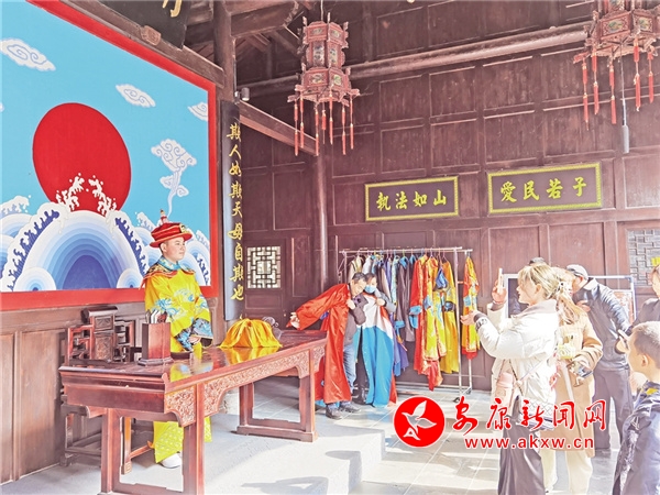 每到周末或節(jié)假日,石泉縣秦巴老街的古縣衙人頭攢動,走近一看,原來大家是在觀看情景劇“縣令審案”。“在古街上演情景劇,這種形式非常好,生動有趣,感覺自己穿越到了古代,特別有氛圍感。”安康市民王樂趁著周末,約上朋友一起到石泉老街游玩。QLE安康新聞網