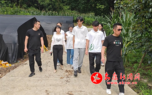 圖為團(tuán)隊(duì)成員在村書(shū)記帶領(lǐng)下調(diào)研