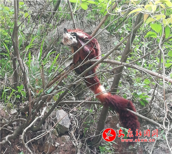 石章明第一時(shí)間聯(lián)系了縣林業(yè)局,工作人員立即趕到護(hù)林站,看見這個(gè)小動(dòng)物全身毛色發(fā)亮,棕紅色與白色相間,拖著一條酷似松鼠一樣的大尾巴,頭又圓又小,眼睛大,眼圈赤栗色,體長(zhǎng)1米多,尾巴長(zhǎng)度超過(guò)體長(zhǎng)。經(jīng)過(guò)現(xiàn)場(chǎng)查看、圖片比對(duì),并和市林業(yè)局聯(lián)系,最終確認(rèn)這就是國(guó)家有益、有重要經(jīng)濟(jì)、有科學(xué)研究?jī)r(jià)值的“三有”保護(hù)野生動(dòng)物——飛狐。隨即,林業(yè)工作人員對(duì)這只飛狐進(jìn)行了全面體檢救治。