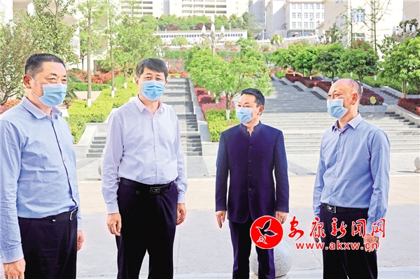 安康市委副書記、政法委書記范永斌(左二),旬陽(yáng)市委書記陳紅星(左一)到旬陽(yáng)市職教中心檢查指導(dǎo)工作。5KA安康新聞網(wǎng)