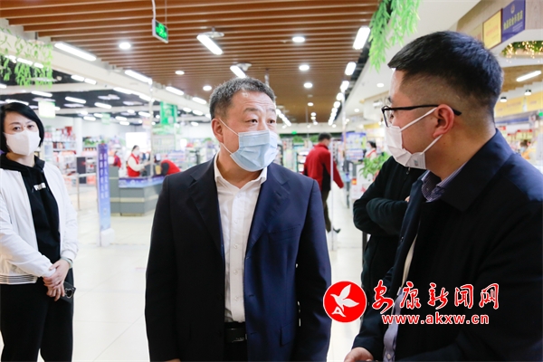 在天一城市廣場,武文罡實地查看疫情防控常態(tài)化措施落實情況,要求各類市場經(jīng)營主體必須堅決克服麻痹思想,從嚴(yán)落實重點場所“測溫、驗碼、戴口罩、一米距、常消毒”常態(tài)化疫情防控措施,全力消除各類風(fēng)險隱患。同時強調(diào)各級要加強物資調(diào)運,備足生活物品,穩(wěn)定市場價格,確保滿足群眾生產(chǎn)生活需求。