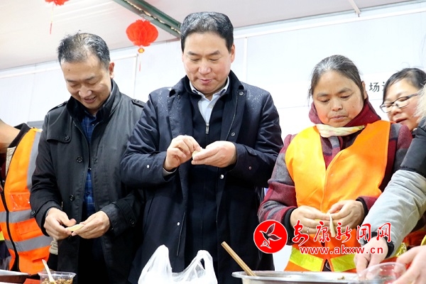 隨后,趙俊民來到項目部職工食堂,與大家一起包餃子、慶佳節(jié)。歡聲笑語中,大家一邊享受美食,一邊與家人視頻連線,大家紛紛表示,一定將市領(lǐng)導的關(guān)懷和問候轉(zhuǎn)化為加快建設(shè)的動力,為早日實現(xiàn)安康人民的藍天夢貢獻力量。