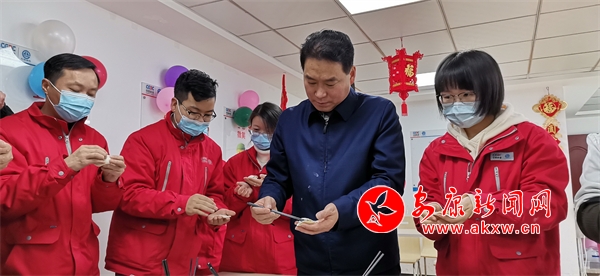 隨后,趙俊民來到項目部職工食堂,與大家一起包餃子吃團(tuán)年飯,其樂融融迎新年。7AY安康新聞網(wǎng)
