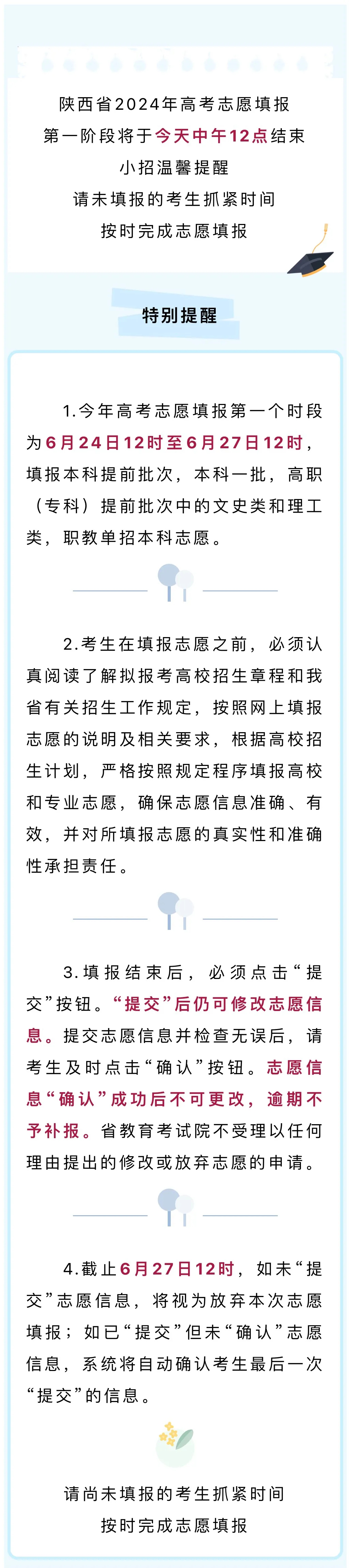 溫馨提醒:陜西高考志愿填報將于今日中午12點結(jié)束
