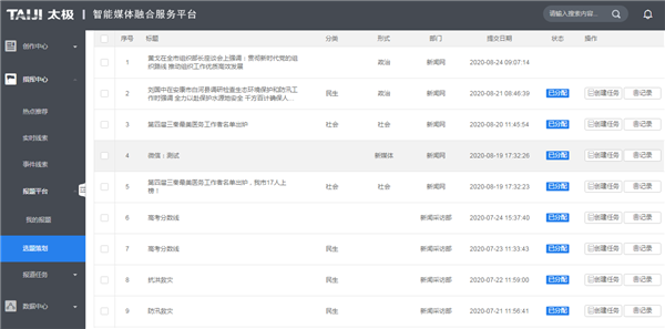 2.從受眾需求入手,建立對(duì)已編發(fā)內(nèi)容的關(guān)注度、影響力評(píng)估,從受眾角度調(diào)整內(nèi)容生產(chǎn)。通過(guò)大數(shù)據(jù)分析,挖掘一些可操作性強(qiáng)、易產(chǎn)生效果的話題,不斷增強(qiáng)輿論主動(dòng)性,提升全媒體新聞品質(zhì)。