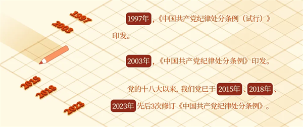 2023年12月,中共中央印發(fā)了修訂后的《中國共產(chǎn)黨紀(jì)律處分條例》,這是黨的十八大以來,我們黨第3次修訂《中國共產(chǎn)黨紀(jì)律處分條例》。下面,我們一起回顧《條例》如何與時(shí)俱進(jìn),不斷修訂完善。