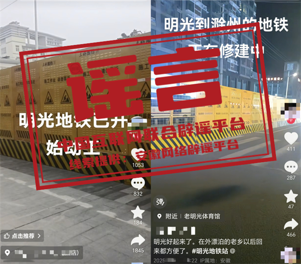 真相:近日,網(wǎng)民“張**”“沙**”等發(fā)布視頻,編造并傳播“明光地鐵已開始動工”相關(guān)虛假信息,并配以誤導(dǎo)性視頻,引發(fā)關(guān)注和討論。經(jīng)核實,相關(guān)視頻內(nèi)容對應(yīng)區(qū)域施工項目并非修建地鐵,網(wǎng)傳視頻系謠言。明光市委網(wǎng)信辦和市公安局已依法對張某、沙某等進行批評教育,并要求其刪除相關(guān)不實信息。(來源:“安徽省互聯(lián)網(wǎng)違法和不良信息舉報”微信公眾號、明光市委網(wǎng)信辦)4R9安康新聞網(wǎng)