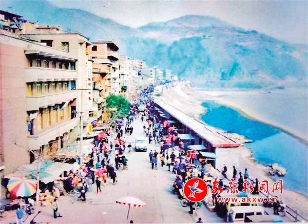 20世紀(jì)90年代初,旬陽河街農(nóng)貿(mào)市場,每到臘月,購買年貨的人絡(luò)繹不絕。吳定國 攝