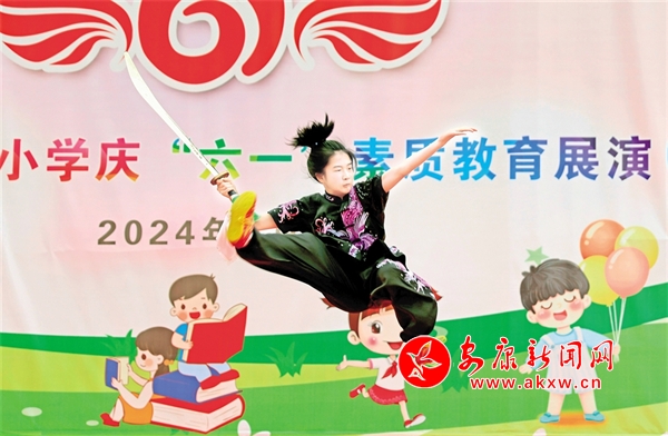平利縣各小學(xué)、幼兒園開(kāi)展多種活動(dòng),喜迎“六一”國(guó)際兒童節(jié)。圖為平利縣城關(guān)小學(xué)的學(xué)生在表演武術(shù)。沈奕君 攝
