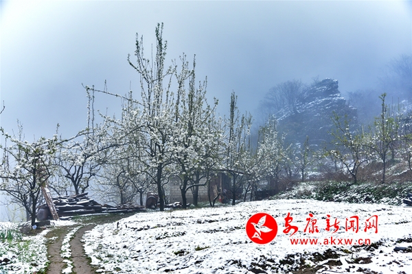 日前,一場(chǎng)洋洋灑灑的春雪,讓平利縣城關(guān)鎮(zhèn)龍頭村太平寨展現(xiàn)出春雪壓梨花的美景。據(jù)悉,太平寨有梨樹(shù)十余畝,與絞股藍(lán)栽植套種,年產(chǎn)酥梨萬(wàn)余斤。(王韜 攝)wsA安康新聞網(wǎng)