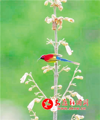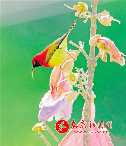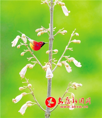 桐花鳳,是經(jīng)常出現(xiàn)在古代文人墨客筆下的吉祥鳥。但因很多人從未見過桐花鳳,遂將桐花鳳與綠毛幺鳳等混淆起來。經(jīng)今人翔實(shí)考證,才證實(shí)古“桐花鳳”就是現(xiàn)今的“太陽鳥”。太陽鳥象征著祥瑞、吉祥和諧、鳳凰齊飛、太陽重升、身化火焰而使人間恢復(fù)光明。它還是熱愛光明、追求光明、獻(xiàn)身光明的象征。太陽鳥也是太陽崇拜和鳥崇拜相結(jié)合的產(chǎn)物。太陽鳥世界共有14種,中國有6種,被譽(yù)為“東方的蜂鳥”“月下老人”,再加上太陽鳥的寓意如此之好,太陽鳥一直受到人們的喜愛與青睞。(圖文 張東風(fēng) ) jnP安康新聞網(wǎng)