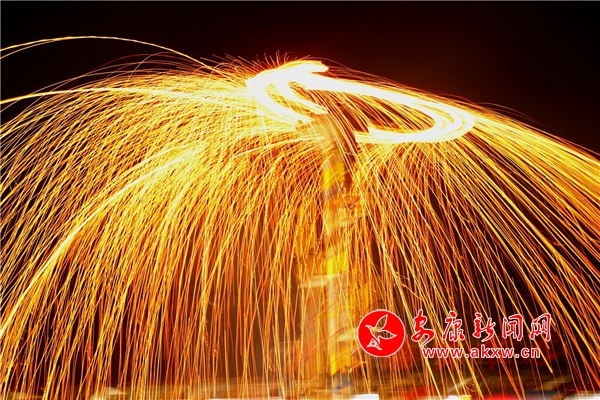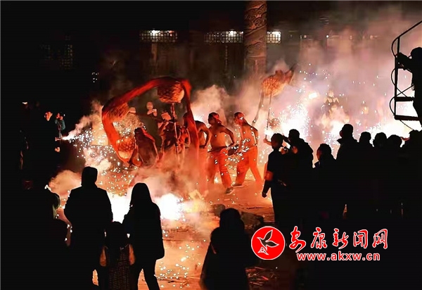 正月十五元宵佳節(jié),漢濱區(qū)大同鎮(zhèn)魯家村火龍舞獅表演鬧紅元宵夜。(陳榮斌 葉子怡 攝)