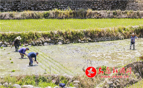 初夏時(shí)節(jié),在漢陰縣漩渦鎮(zhèn)鳳堰古梯田里,一個(gè)個(gè)忙碌的身影點(diǎn)綴在亮麗的梯田畫面之間,隨處可見農(nóng)民忙碌的身影,村民們往來的腳步不斷映入眼簾。 (圖文/陳德模)JQB安康新聞網(wǎng)