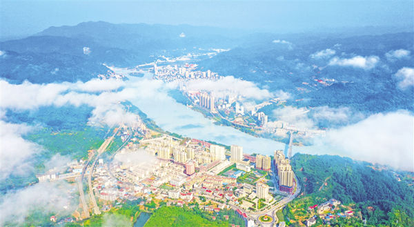 入冬之后,石泉云霧山鬼谷嶺景區(qū)的樹葉紅了,登上山頂遠(yuǎn)眺群山,疊翠流金,云霧縹緲,宛如人間仙境。