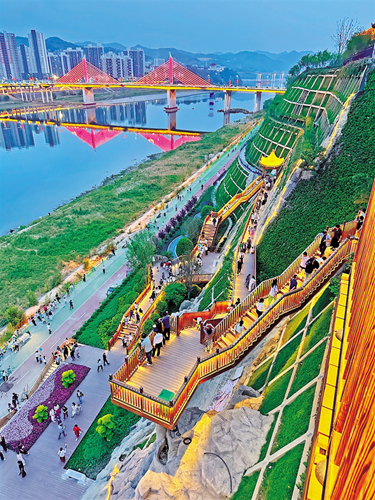觀瀾亭飛檐斗拱,站在這里可西望月河匯漢江、東瞰碧水穿城過;覽江云臺(tái)以鋼結(jié)構(gòu)懸挑凌空18.5米,形成“云端透視”觀江視角;花瀑疊翠垂直落差30米,杜鵑映崖、霧森彌漫,宛如仙境;望川臺(tái)將原始排水溝改造成“人工天成”的塑石景觀,周邊景色盡收眼底。zVR安康新聞網(wǎng)