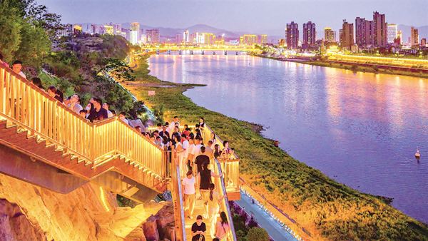此外,人臉識(shí)別閘機(jī)、智能安防系統(tǒng)保障客流安全;夜間照明系統(tǒng)勾勒亭臺(tái)棧道輪廓,江面波光與城市燈火交相輝映,形成璀璨夜景。zVR安康新聞網(wǎng)