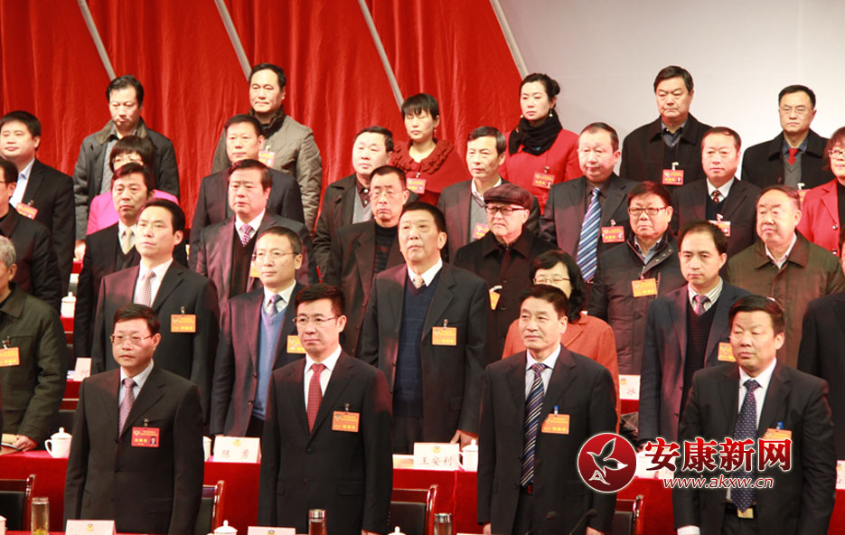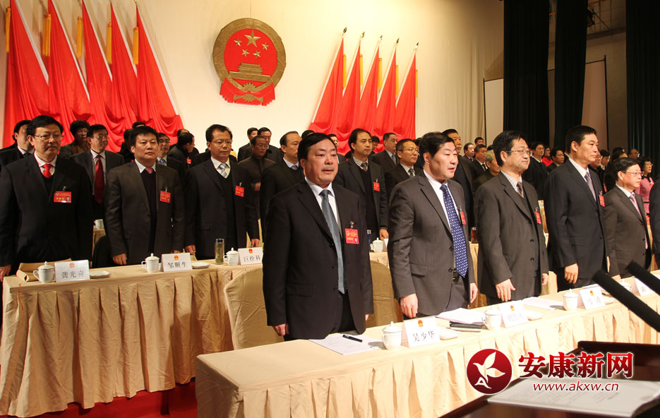 全體起立高唱國歌,政協(xié)第三屆安康市委員會第四次會議勝利閉幕。