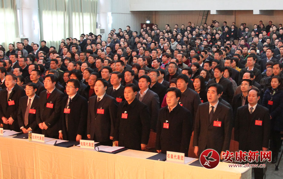 全體人員起立高唱國歌,安康市第三屆人民代表大會第五次會議勝利閉幕!