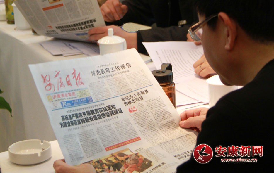 政協(xié)委員正在認(rèn)真地閱讀《安康日報(bào)》關(guān)于兩會的報(bào)道。