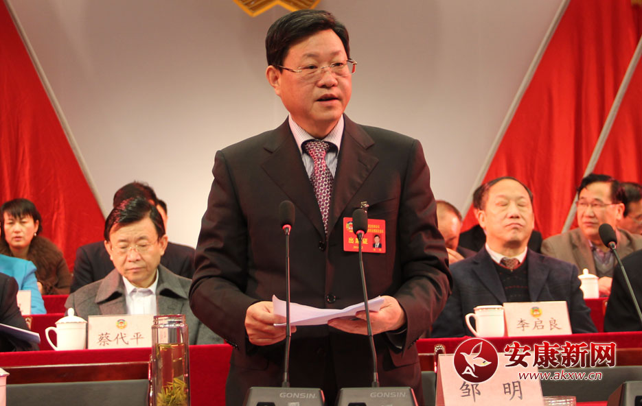 市政協(xié)主席鄒明代表政協(xié)安康市第三屆委員會常務(wù)委員會向大會報(bào)告工作。