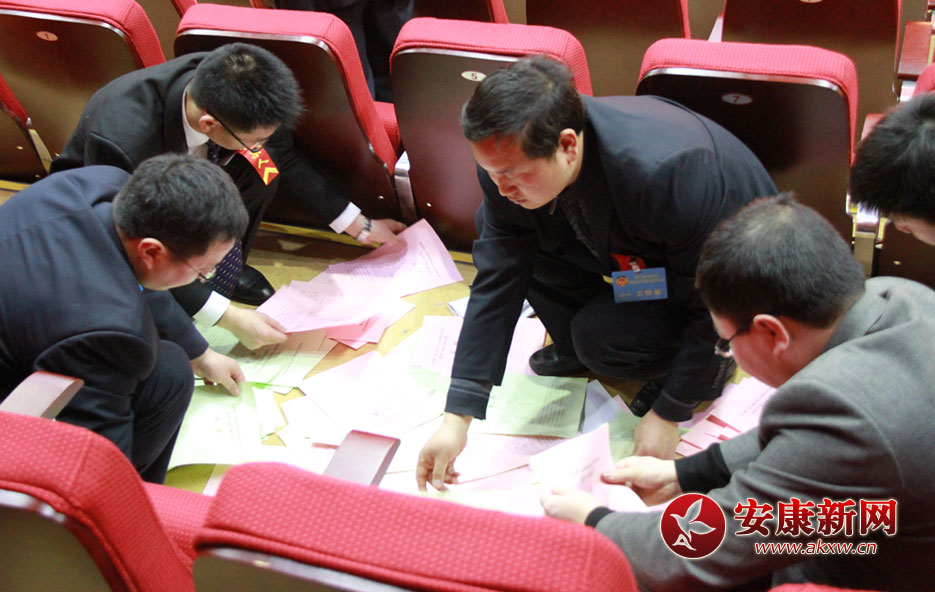 大會工作人員現(xiàn)場對投票進(jìn)行統(tǒng)計(jì)