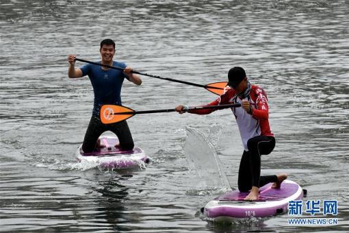 ↑11月16日,皮劃艇槳板競(jìng)渡選手在比賽中。 當(dāng)日,2018年福建將樂(lè)皮劃艇趣味賽在將樂(lè)縣金溪河開賽。本次比賽設(shè)皮劃艇拔河、皮劃艇接力、槳板競(jìng)渡3個(gè)項(xiàng)目,吸引……