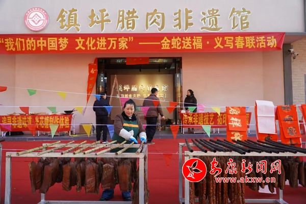 灌香腸、熏臘肉,拓祝福、寫春聯(lián)……1月5日,“鎮(zhèn)坪縣臘肉節(jié)”拉開帷幕,一大早,陜西省省級(jí)非物質(zhì)文化遺產(chǎn)生產(chǎn)性保護(hù)示范基地“鎮(zhèn)坪臘肉腌制技藝”非遺工坊——鎮(zhèn)坪縣漢巴食品有限公司門前支起了巨型大鐵鍋,燉上了500斤的臘肉、臘排、臘豬蹄和香菇、竹筍、干洋芋等輔料。鎮(zhèn)坪臘肉歷史悠久,在數(shù)百年的傳承中形成了獨(dú)特的制作工藝與文化內(nèi)涵。2013年9月11日“鎮(zhèn)坪臘肉腌制技藝”列入陜西省第四批非物質(zhì)文化遺產(chǎn)名錄。而鎮(zhèn)坪臘肉腌制非遺工坊更是被陜西省文化和旅游廳、陜西省原扶貧開發(fā)辦公室認(rèn)定為陜西省第一批省級(jí)非遺扶貧就業(yè)工坊。(記者 張喬)