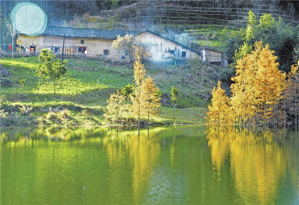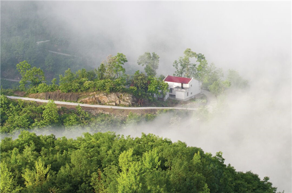 在水中,一條油潤潤的小路,融匯了大地的物語,春雨的澆注,還有輕輕觸碰就會變幻的神秘。道路的兩邊,是造型夸張要滴出翠來的植物,阻擋了行人的腳步,牽絆了路人的衣服,會給那些衣服沾染上艷麗的花粉,在深夜里都會散發(fā)出一股醉人的清氣,仿佛有什么該想而未想,心里蘊滿了不能為人道皎潔的白月光。沿著那條路,就是在水中宛若樓臺亭閣一般的房屋,黑瓦房、白墻壁,杏花、桃花、茉莉花爭相簇擁,房子便如置身其中的嬰兒了。還有小奶狗在屋前悠閑地打盹,太陽直射下來,貓也走來湊湊熱鬧,貓的眼睛碧藍澄澈,仿佛天使之瞳,總是帶著先知或者驚異審視的表情……而與此相對的,就是炊煙了,唯有炊煙將我們拉回世俗庸常之中,飯菜的香氣,去年果木熏的臘肉,農(nóng)家自己釀的一碗包谷燒,啊,真想喝點小酒,酒的美妙不在于入口的辛辣,而在于微醺之時,那種難以控制的快樂!古來圣賢皆寂寞,唯有飲者留其名,明天的事,明天再說吧!