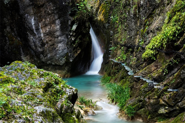 正說著,老太太風(fēng)塵仆仆地回來了。交談中我問她有沒有拍幾張瀑布的照片,她說拍了很多小視頻和照片。在她的手機(jī)里,我看到了“雁山瀑布”如天馬行空的銀河,優(yōu)雅地在空中舞動,散發(fā)著靈動的清新,讓人心曠神怡;看到了瀑布群如同一幅幅流動的畫卷,從高高的崖壁傾瀉而下,水花飛濺,在陽光下熠熠生輝,閃爍著晶瑩剔透的光芒;看到了“蓮花石海”猶如蓮花般綻放于溪谷,奇石林立,溪澗飛流,蒲草蔥郁,蔚為壯觀;看到了“眾石飛泉”宛如銀龍勁舞,飛落碧潭,濺起點點水花,曼妙成躍動的精靈,美輪美奐,姿態(tài)萬千。