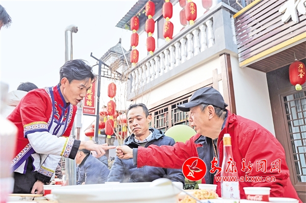 長街里的宴席上坐無缺席;一道道精美的庖湯佳肴陸續(xù)上場,席間,賓客們喝著美酒、品著美食、看著節(jié)目,歡聲笑語不斷。臺上的節(jié)目精彩紛呈,讓賓客們目不暇接,不時報以熱烈掌聲,充分展現(xiàn)了石泉縣深厚的文化底蘊(yùn)和獨特的民俗文化。不少外地游客慕名而來,帶著親友來到石泉,親身感受特色庖湯宴。豪邁的秦巴漢子激情劃拳喝酒,在場的游客市民都沉浸在新年的喜悅中,舉杯暢飲,現(xiàn)場熱鬧非凡,滿滿年味十里香飄……